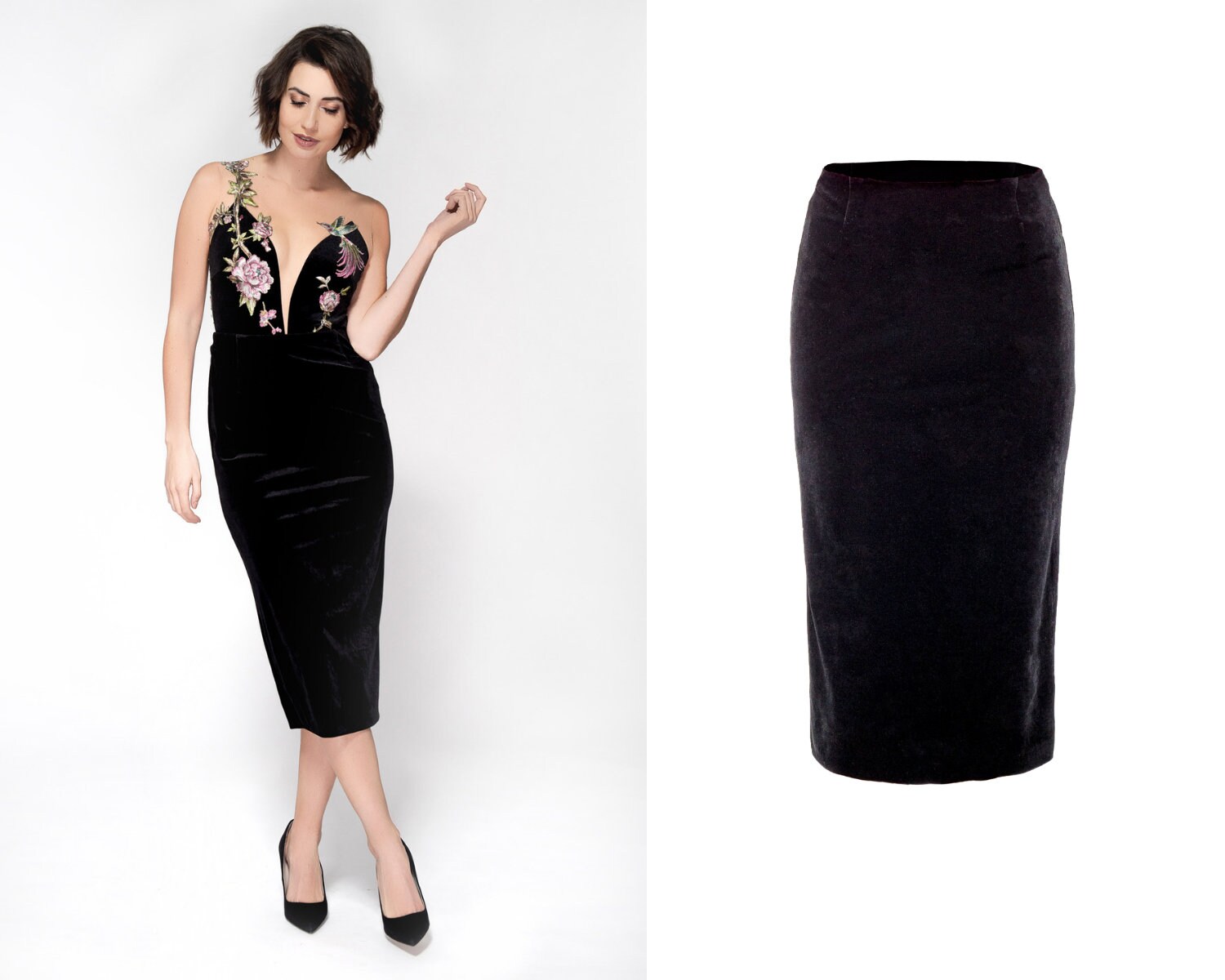 Velvet Pencil Skirt Elegant Skirt Party Skirt Velour Etsy